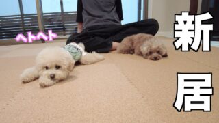 癒やし 新居にコルクマットを敷き詰めたらはしゃぎすぎてヘトヘトになったトイプードル
