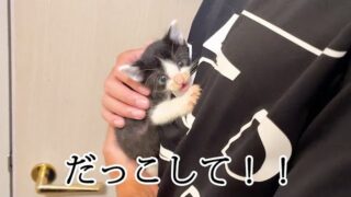 まずは人懐っこいキジトラ(後のコムギ)を抱っこで捕獲。